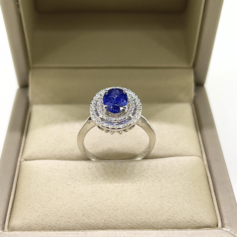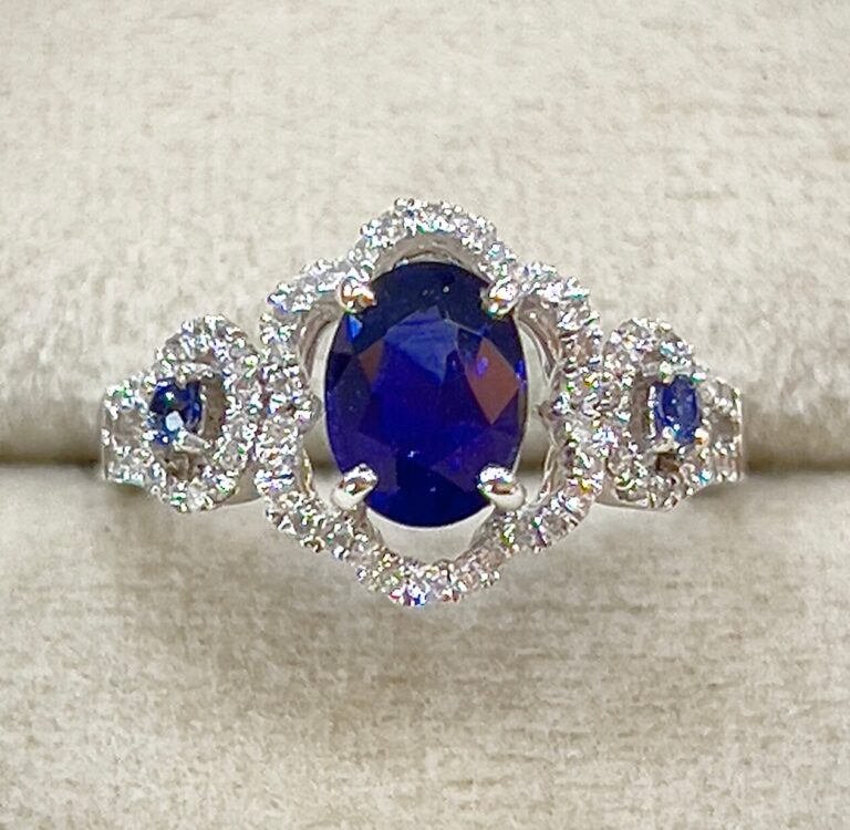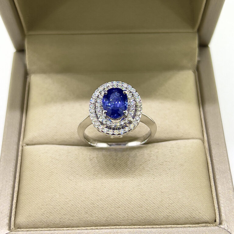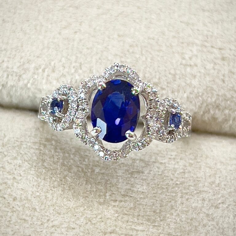 1.59 CARAT ROYAL BLUE SAPPHIRE AND DIAMOND RING IN 18K WHITE GOLD